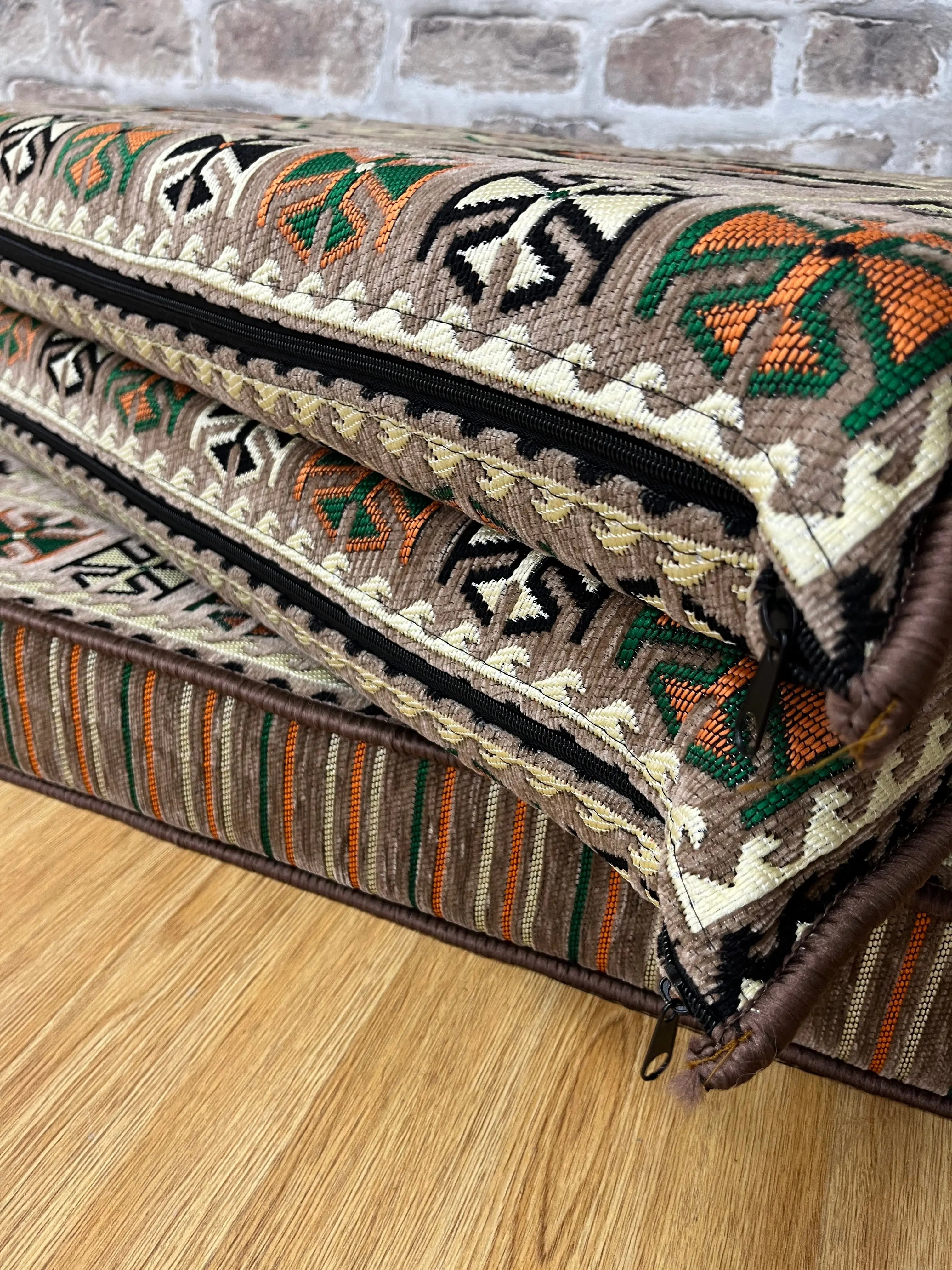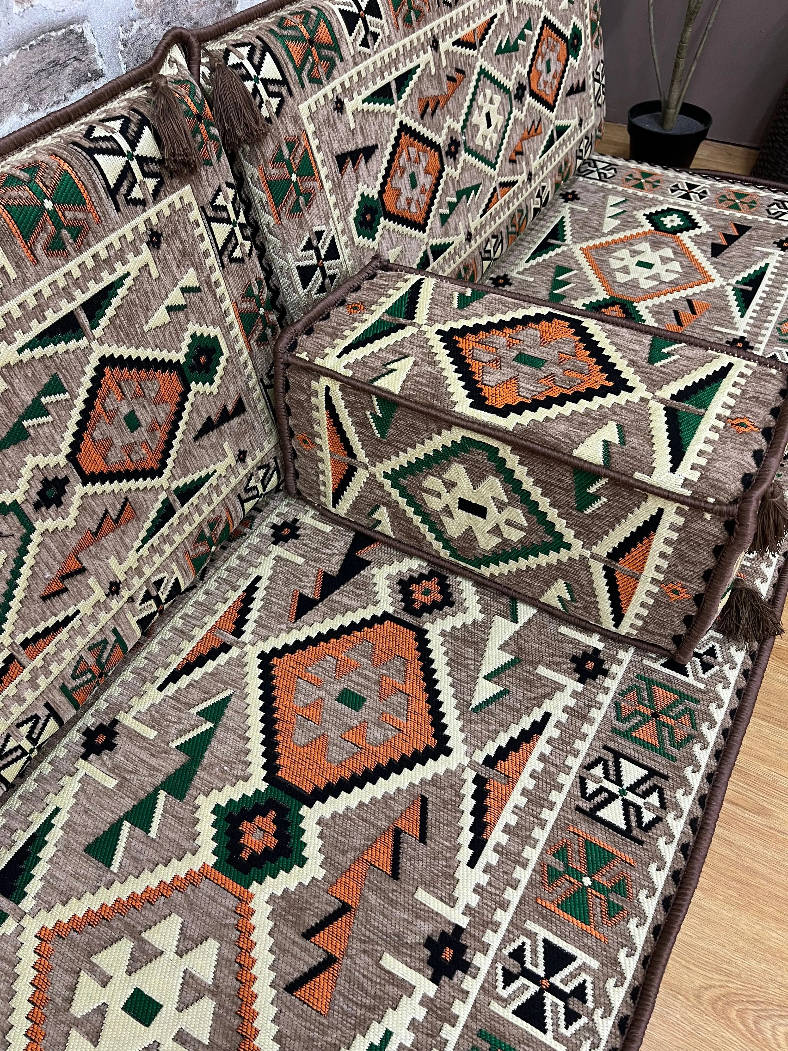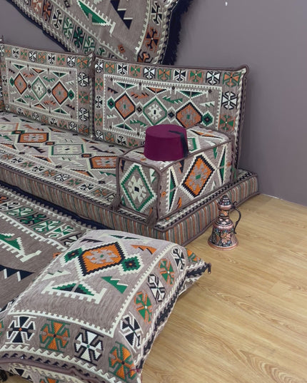 Apportez une véritable touche orientale à votre intérieur avec cet ensemble salon traditionnel ANADOLU Beige, inspiré des salons anatoliens authentiques. Son design kilim aux motifs géométriques et ses teintes naturelles créent une ambiance chaleureuse, élégante et conviviale.