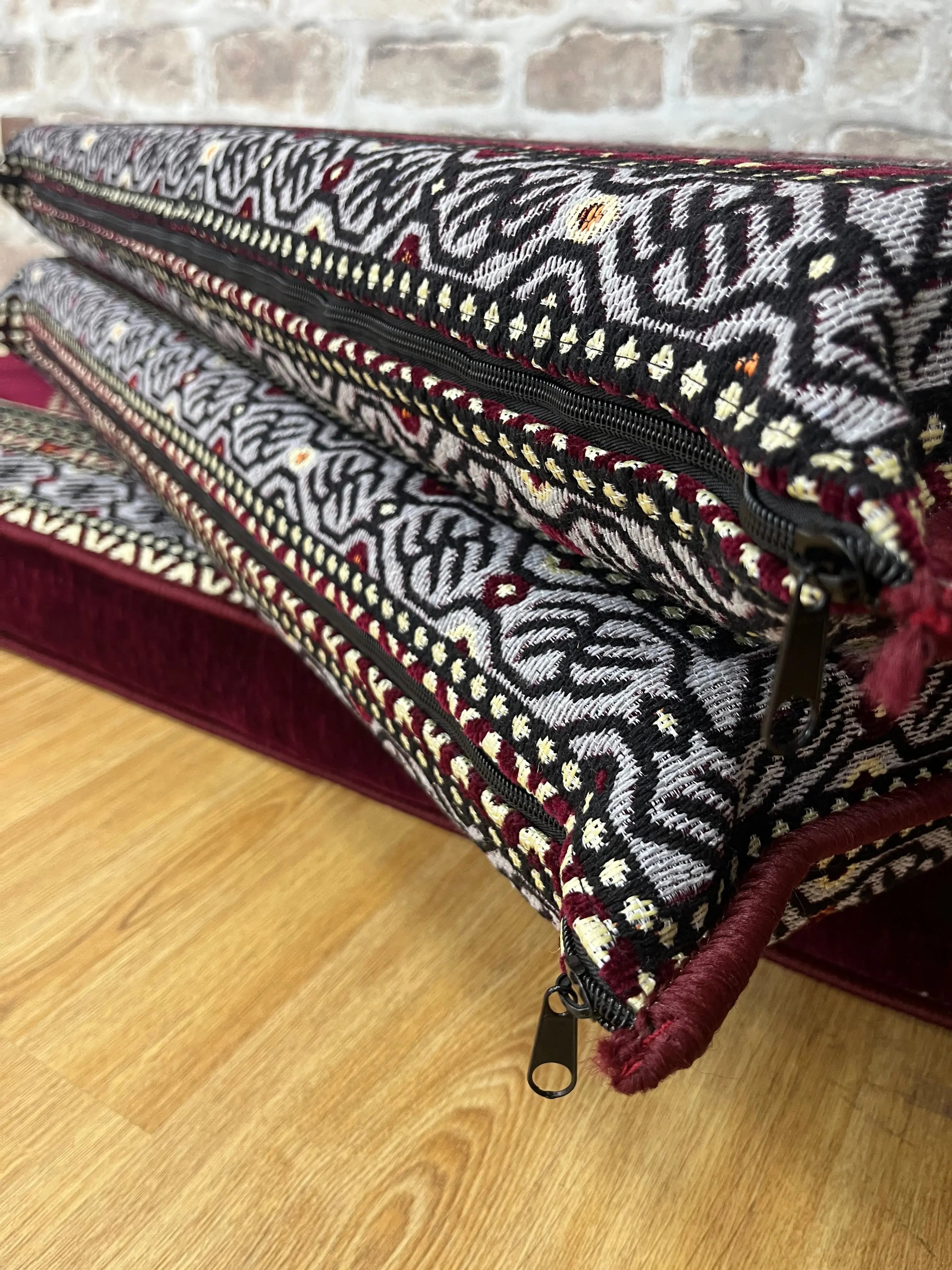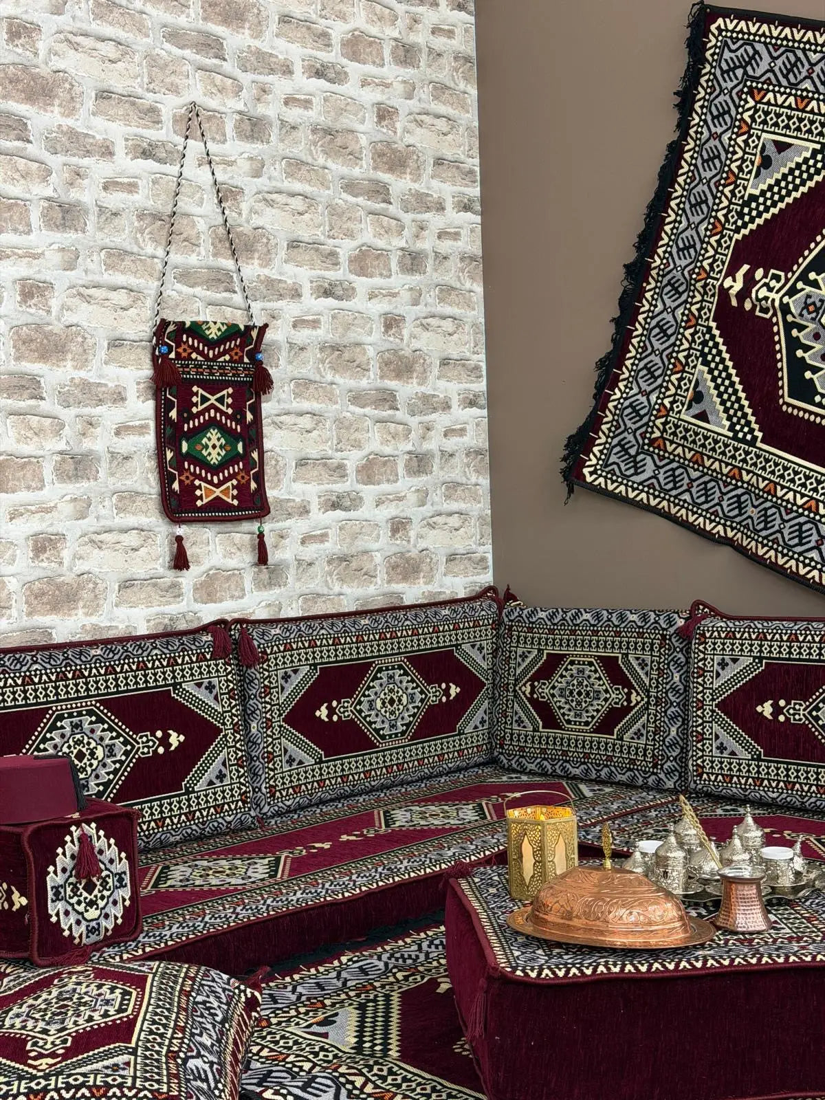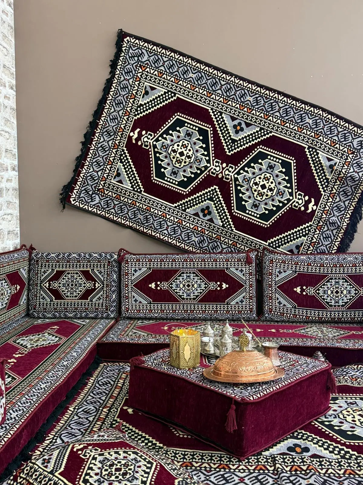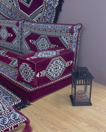 Apportez une véritable touche orientale à votre intérieur avec cet ensemble salon traditionnel ORIENTAL Bordeaux, inspiré des salons orientaux authentiques. Son design kilim aux motifs géométriques et ses teintes naturelles créent une ambiance chaleureuse, élégante et conviviale.